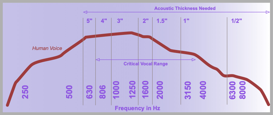 So how does this type of foam treatment work? It takes just a small bit of science to help explain. The acoustical treatment must be thick enough to absorb the problematic sound waves and keep them from bouncing back at you. The lowest frequency in our hearing range is 20 hertz. Would you believe the length of that sound wave is about 54 feet long?