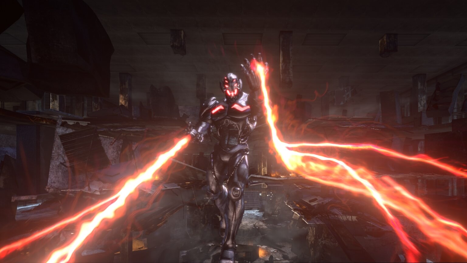 Collectively, The Avengers bring down Ultron’s shields and give Howler One a clear shot. With a tremendous flash, the weapon fires an energy blast, shredding Ultron into pieces and causing his drones to drop harmlessly from the sky. The Avengers (and the trainees) are victorious!