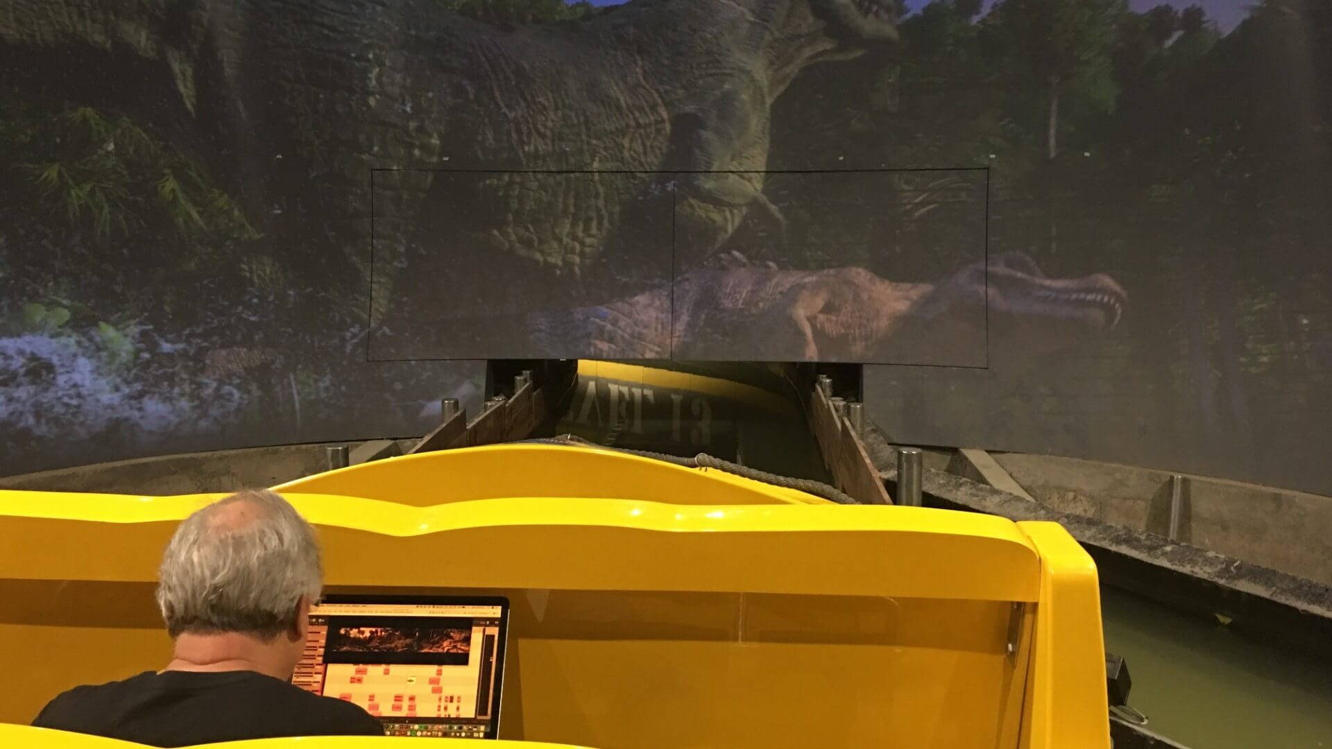 Lastly, our sound designer not only created a custom musical score, but he also had the opportunity to create all of the unique sounds that distinguished the dinosaurs from one another. He dialed in the acoustics for an optimal, immersive 7.1 surround sound experience. The objective was to deliver a stunning, rich, inspired, and enthralling dinosaur encounter that wowed guests in this action-packed environment. Placing riders in the center of the melee, as huge T-rexes roared at them, added a hair-raising dimension to this adrenaline-filled experience.