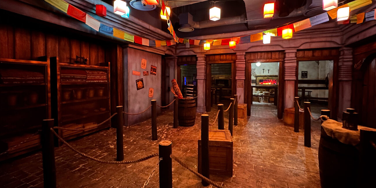 When guests enter the queue for the 4D dark ride, Legend of the Desirata™, at Katmandu Park | Punta Cana, they’re transported to a traditional Nepalese market. The low chatter of unseen shoppers can be heard in the aisles of the bazaar. A sign warns visitors to watch out for unexpected portals. From time to time, a flash of light pops behind a door as a sound suddenly arises, indicating another portal has just opened.