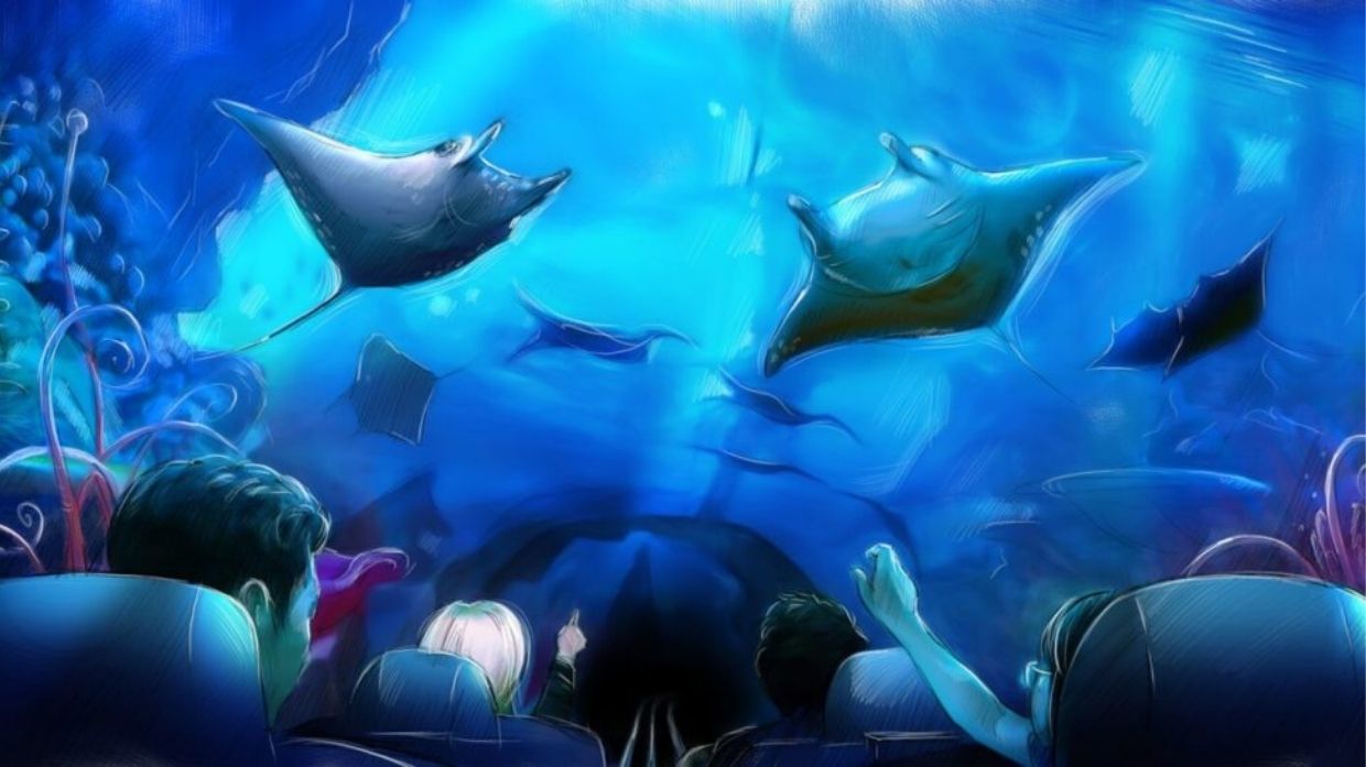 Falcon’s developed an innovative concept for the on-ride experience that included a massive media tunnel with a custom 270° screen that wrapped around and above the 5-car trains before the initial coaster launch. In the concept, riders are brought into the dynamic underwater world of the manta ray, as well as tropical fish, sponges, starfish, and other beautiful sea life.Falcon’s was extended to provide the turnkey execution of their final design for the launch tunnel show components, managing the procurement and installation as well as all sub-vendors involved to bring the vision to life.
