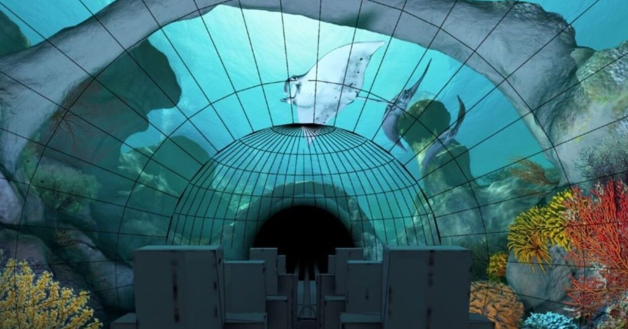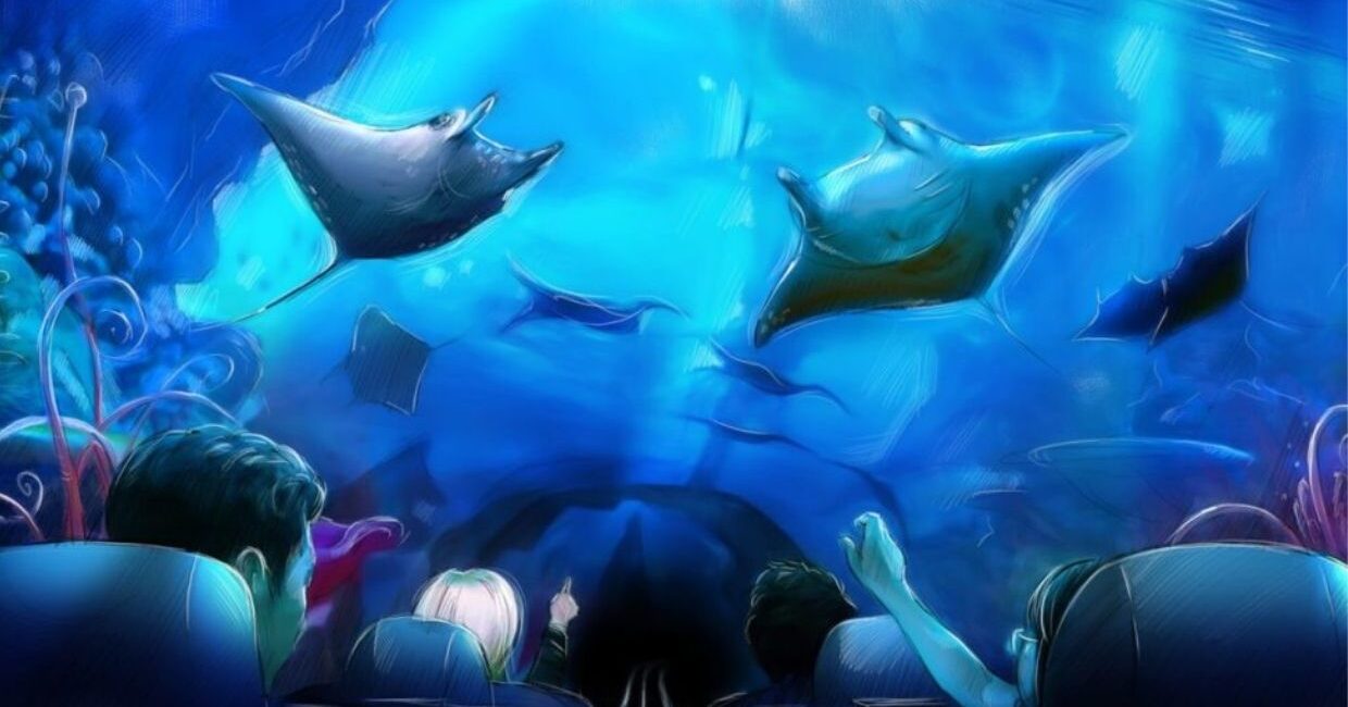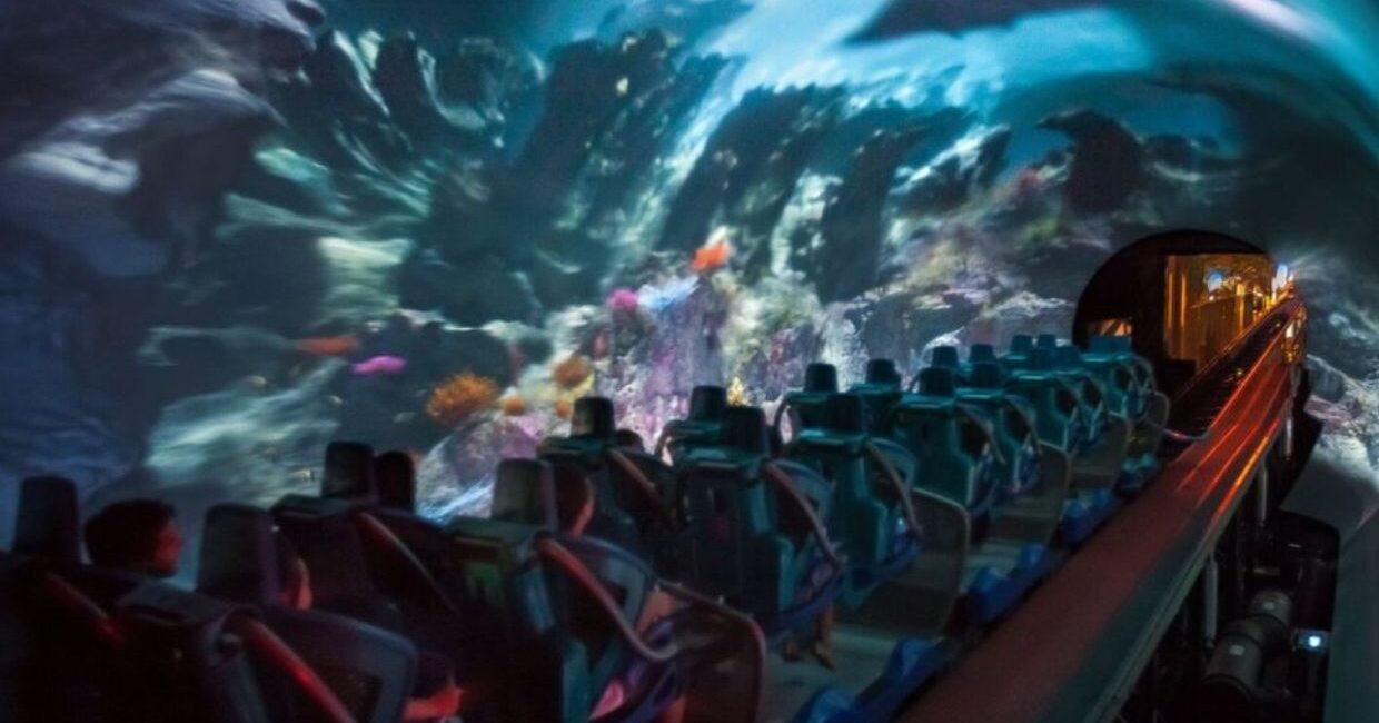 Falcon’s developed an innovative concept for the on-ride experience that included a massive media tunnel with a custom 270° screen that wrapped around and above the 5-car trains before the initial coaster launch. In the concept, riders are brought into the dynamic underwater world of the manta ray, as well as tropical fish, sponges, starfish, and other beautiful sea life.Falcon’s was extended to provide the turnkey execution of their final design for the launch tunnel show components, managing the procurement and installation as well as all sub-vendors involved to bring the vision to life.
