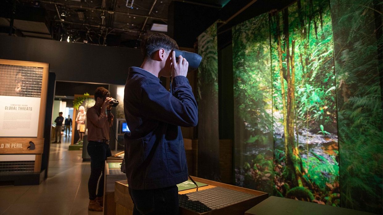 That’s exactly what we saw when we introduced it to the public for the first time at the Becoming Jane exhibition at the National Geographic Museum in Washington, D.C. Visitors use the AR device as if it’s a pair of binoculars. Through the lens, they are able to view animated content that we produced in-house that shows some of Jane Goodall’s most important discoveries of chimpanzee behavior.